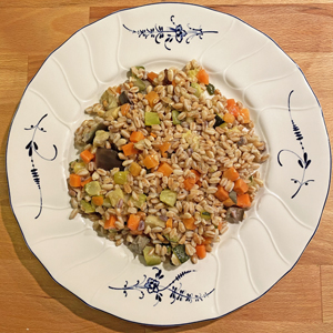 30/04/2021 Venerdì Sformatino di verdure con pappa al pomodoro di mare Farro con melanzane, carote e zucchine |